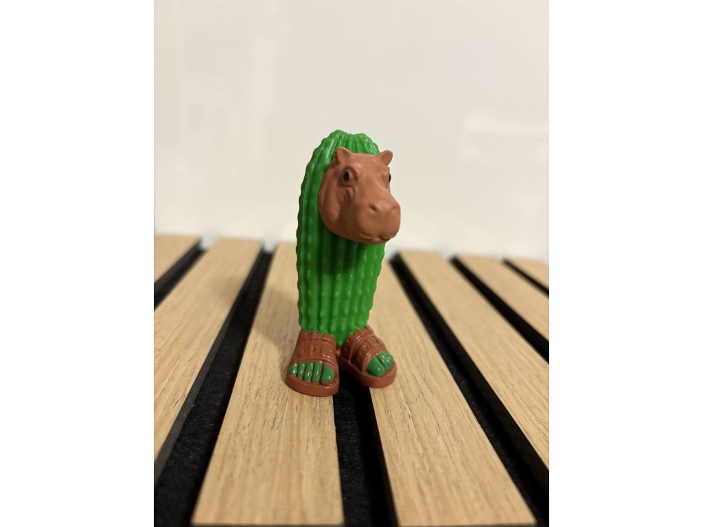 Představujeme ti figurku Il Cacto Hipopotamo – podivný mix kaktusu s hlavou hrocha a sandály na nohou. Jeho životní styl? Totální zen. Neřeší nic, jen si užívá svůj svět trnů a pantoflí. Přidej si ho do své sbírky a nech se nakazit jeho klidem.