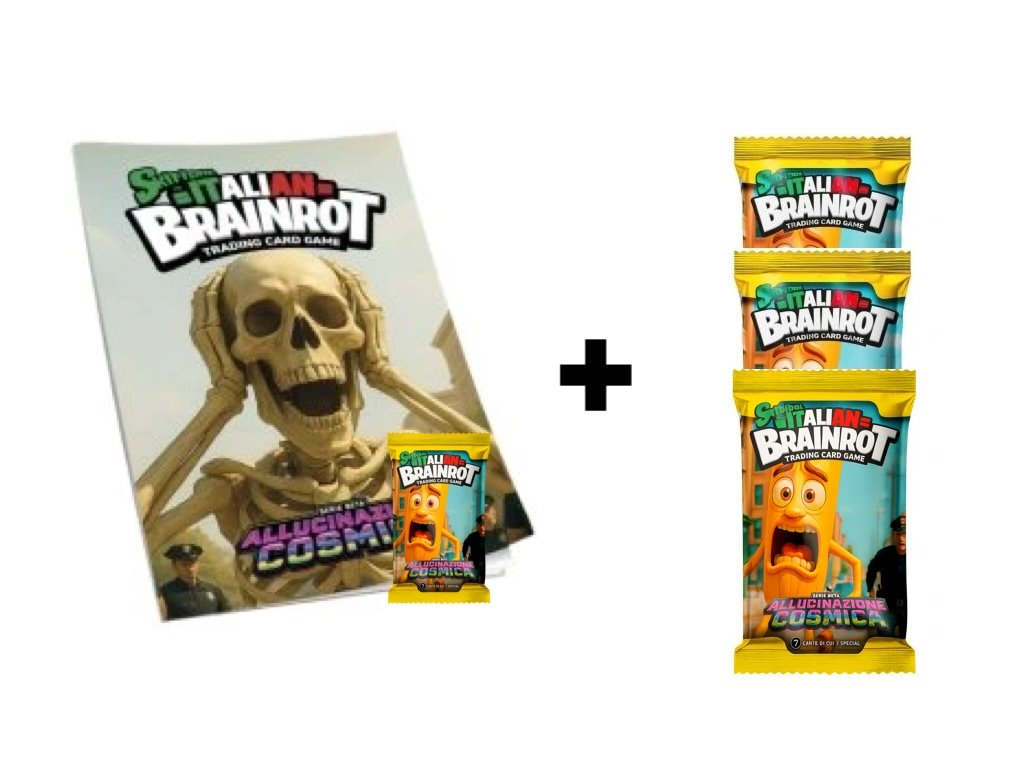 Oficiální a originální balíček SKIFIDOL™ Italian Brainrot TCG ( edice Allucinazione Cosmica) – 7 karet plných meme šílenství a bizáru. V každém balíčku najdeš...